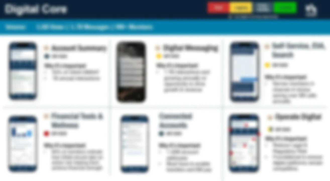 The work focused on translating complex initiatives such as AI-powered virtual assistants, alerts and messaging systems, and core digital platform investments into clear, executive-ready strategies that could align teams and accelerate execution.